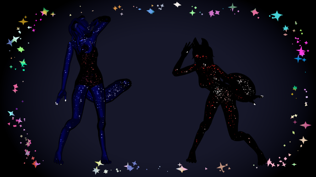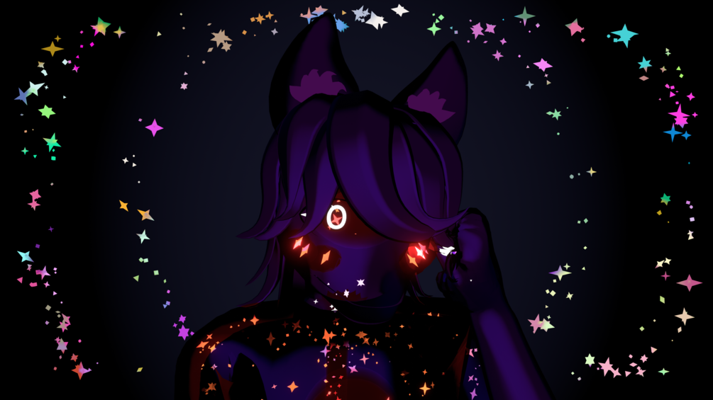 Comfortable animation of stars, 'heart,' and thighhighs.